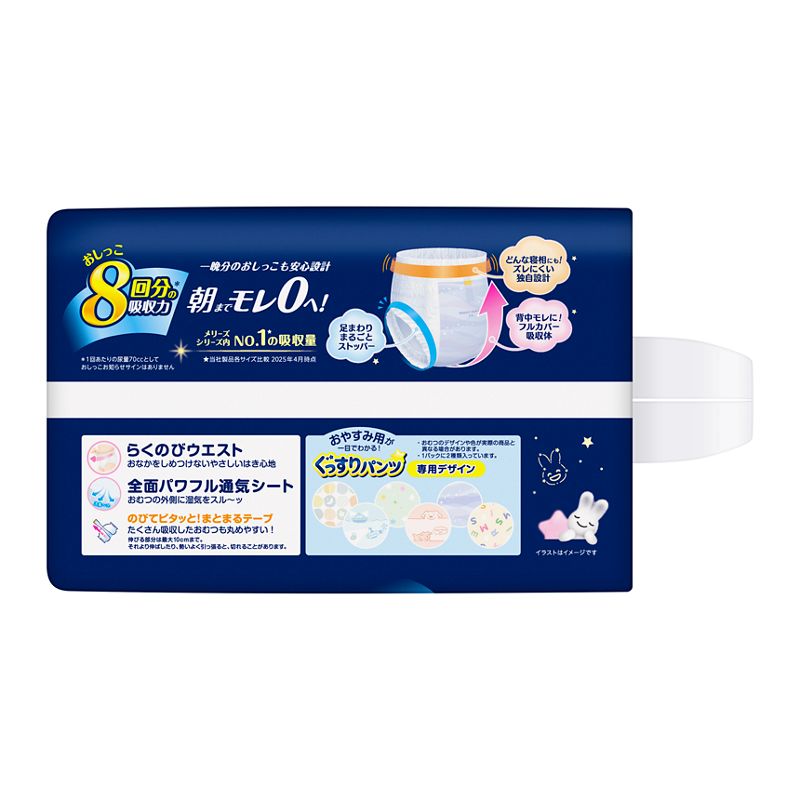 メリーズシリーズ内No.1※の吸収量で、朝までモレ0へ!おしっこ8回分*を吸収します。