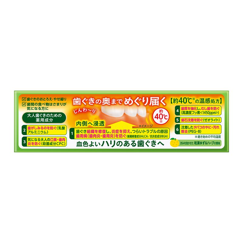 歯ぐきの奥までめぐり届く。歯ぐきのための約40℃※じんわ~り温感処方。