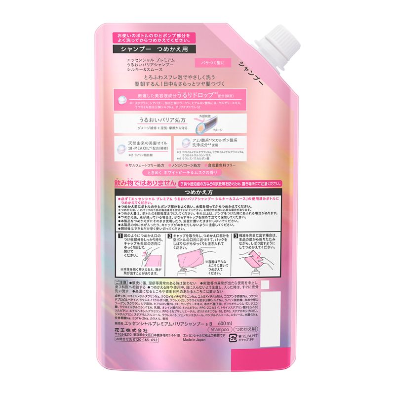 花王 エッセンシャル プレミアム うるおいバリアシャンプー シルキー&スムース つめかえ