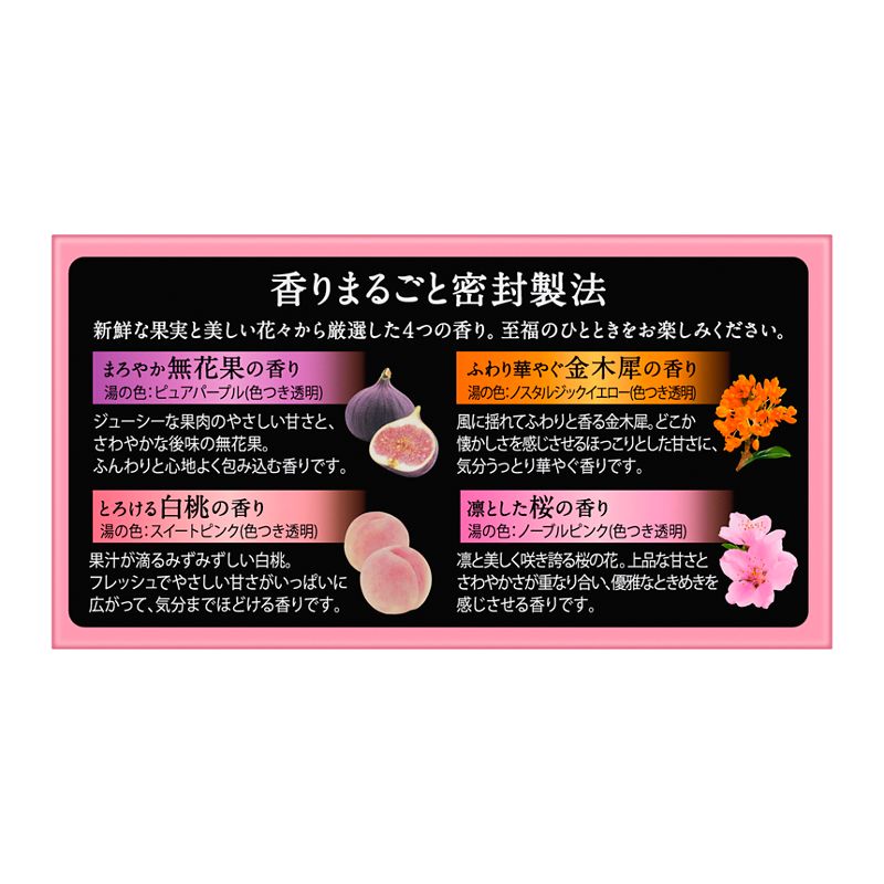 香りまるごと密封製法!新鮮な果実と美しい花々から厳選した4つの香り。