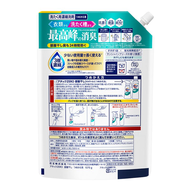 衣類から洗たく槽まで、アタックZERO液体史上、最高峰の消臭。