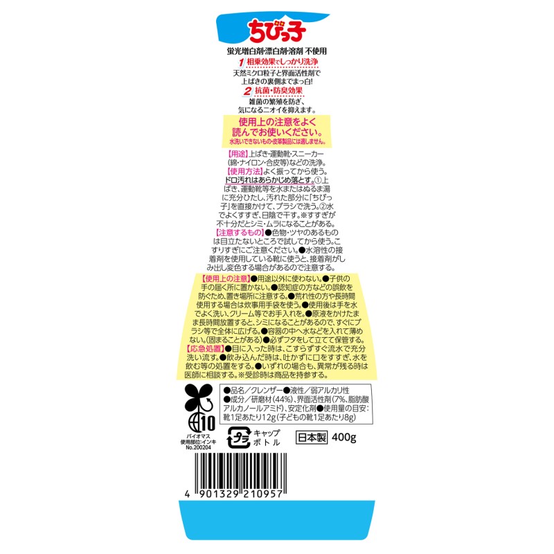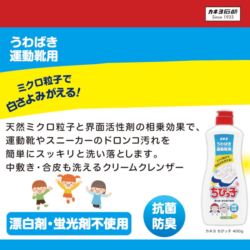 ●天然ミクロ粒子と界面活性剤の相乗効果で、運動靴やスニーカーのドロンコ汚れを簡単にスッキリと洗い落とします。