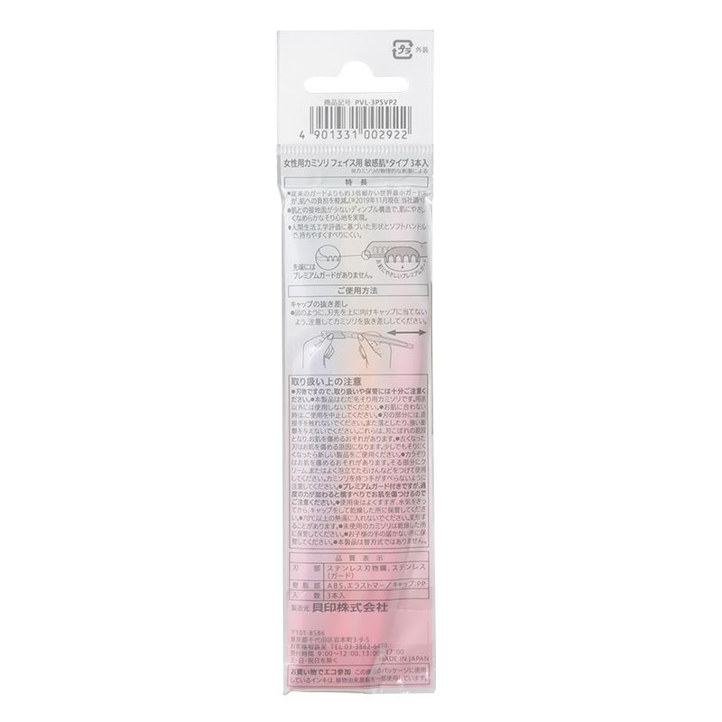 肌当たりがなめらかで肌に優しい敏感肌タイプのカミソリ。