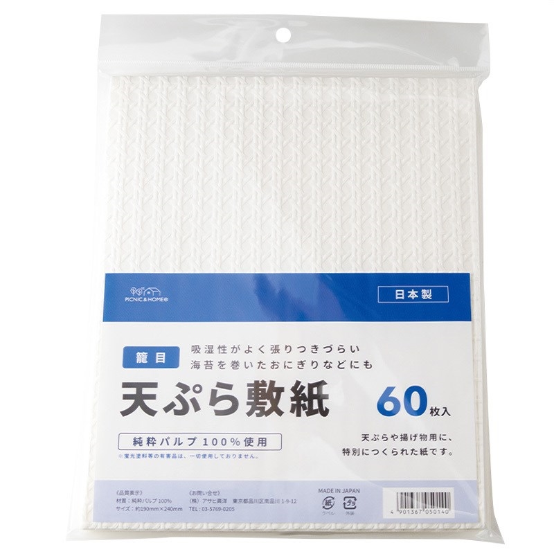 吸湿性が良く張り付きづらい天ぷら敷紙。