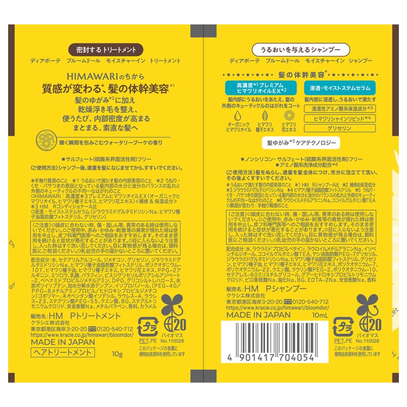 ●トリートメント…水、セテアリルアルコール、ジメチコン、グリセリン、ジラウラミドグルタミドリシンNa、ヒマワリ種子油脂肪
