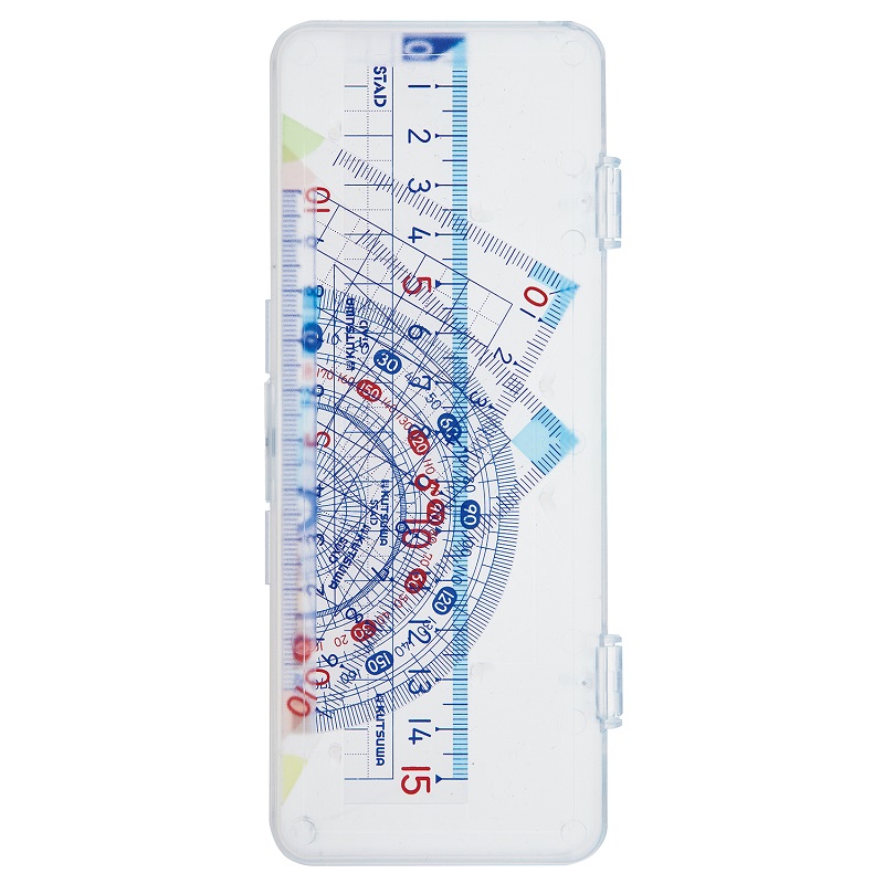 セット内容:15cm定規、直角三角定規、直角二等辺三角定規、分度器、ケース
