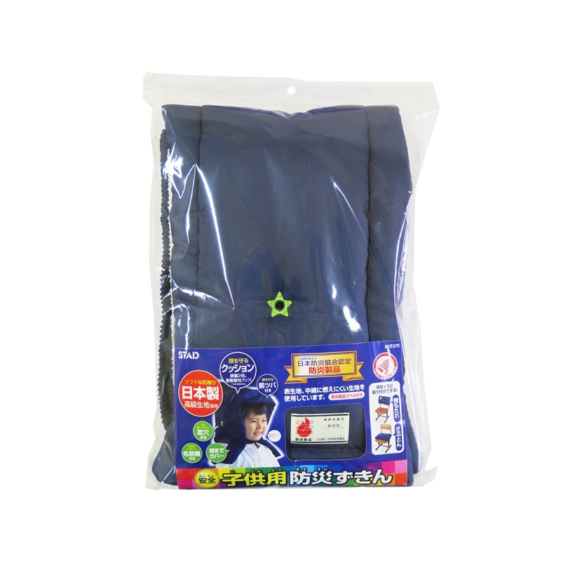 公益財団法人日本防炎協会認定の生地を使用した防災ずきん。