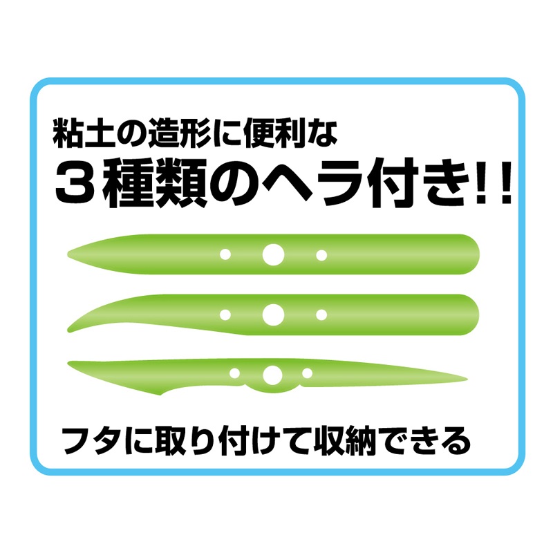 ・ケースの蓋裏に3種類のへらをセット。利便性と収納性がアップ ・へらは造形に便利な形状を採用