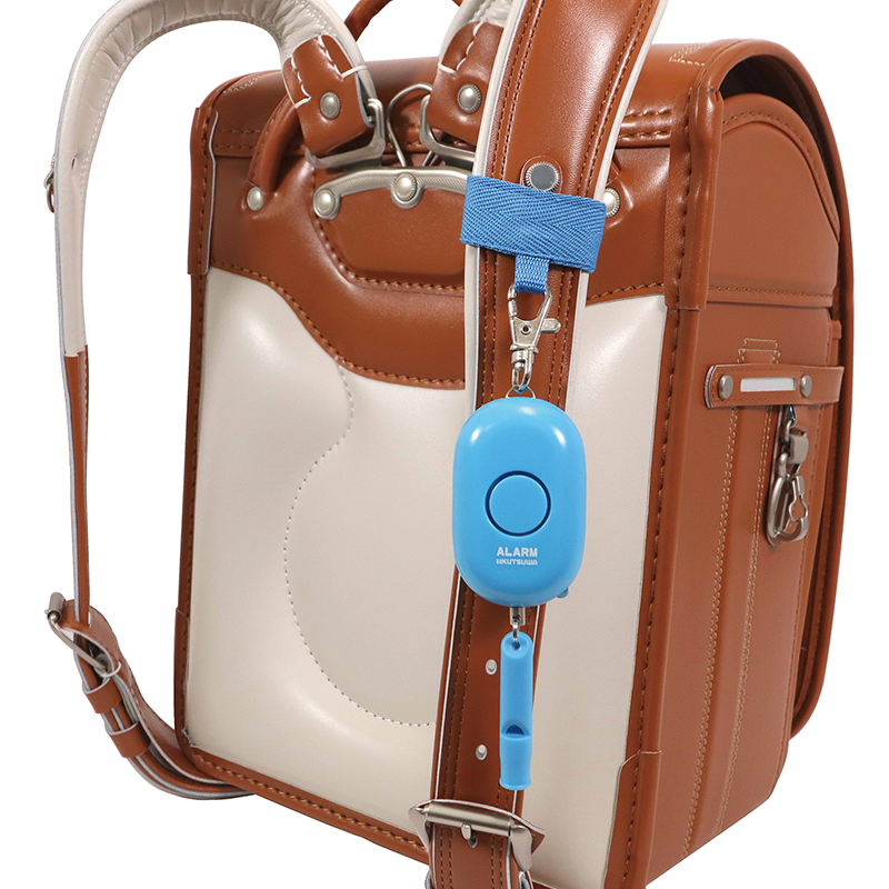 衝撃に強い強化プラスチック使用、緊急時にすぐに引っ張れる位置に取り付け出来るランドセルベルト付