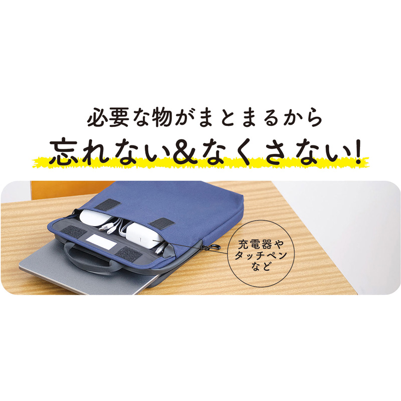 ・充電アダプタやコードが入れられる前ポケット付き