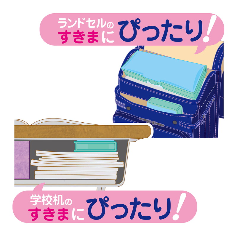 衝撃に強い強化プラスチック使用、ランドセルにぴったりサイズ、2ドアコンパクトタイプ、ベルマーク付