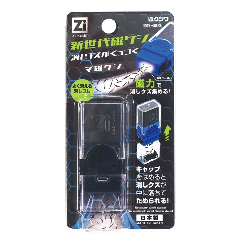 フェライト(鉄紛)入りの消しゴムで消しクズが磁石で集められる。よく消える日本製の消しゴム
