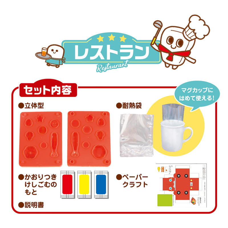 (立体型)ポリプロピレン、(説明書、ペーパークラフト)紙、(耐熱袋)ポリエチレン