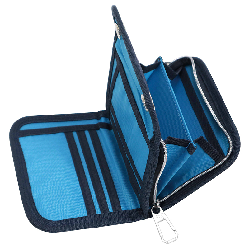 札入れ1室、小銭入れ2室、カード入れ8室(6室+2室)長さ調節出来るストラップ付
