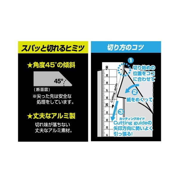 ・雑誌ページ、用紙、書類の不要部分などの切り取りに便利