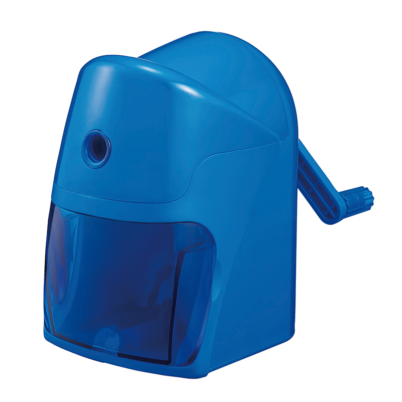 ハンドルの逆回転で鉛筆がおしだされ奥に入った鉛筆も取り出せる