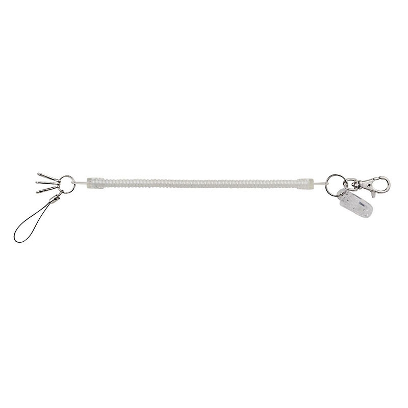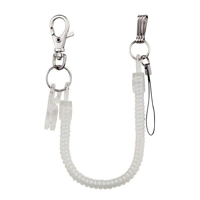 ファイバー入り、携帯ストラップ付、80cmまで伸びる、ベルトを着けない女子が使えるプラクリップ付