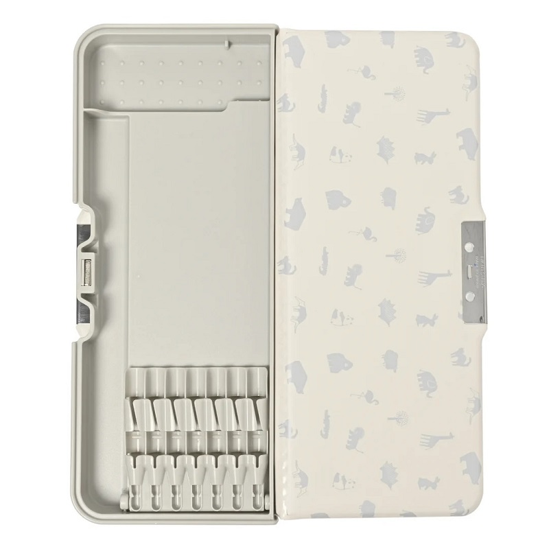 - (表紙)ポリ塩化ビニル、(成型皿)耐衝撃性ポリスチレン、(鉛筆ホルダー) ポリエチレン
