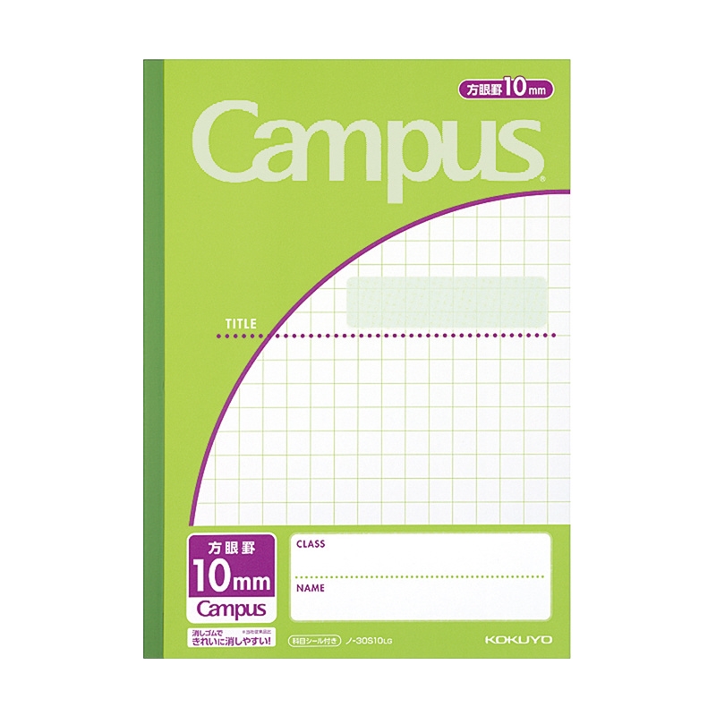 フレッシュ感のあるグリーンの表紙で、用紙は10mmの方眼罫タイプ。