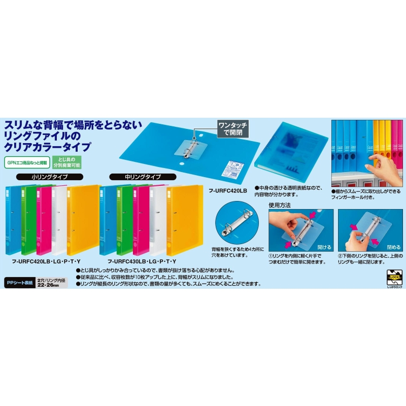 ●背幅が従来品より約7%コンパクトになったリングファイルです