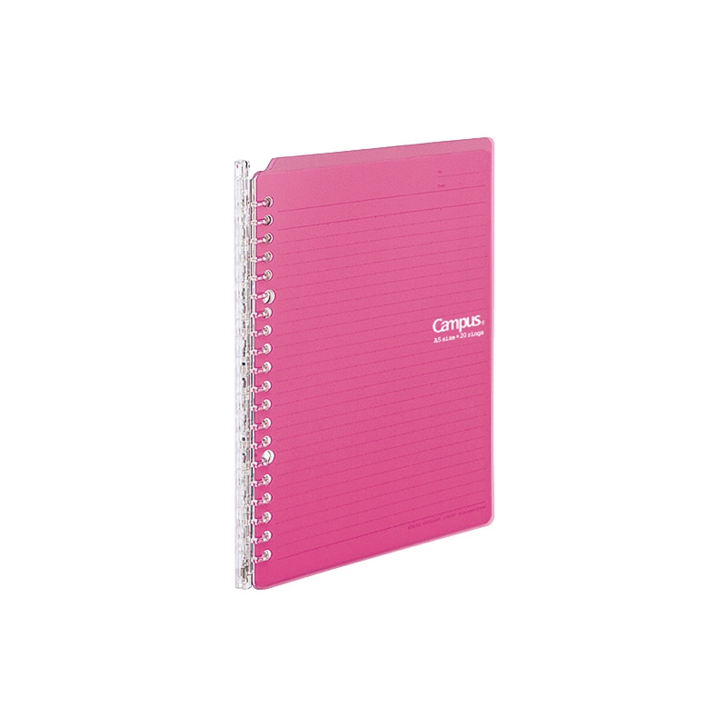 A5サイズ(20穴)のルーズリーフに対応しています。●表紙/R‐PP●最大収容枚数/25枚●セット内容/中紙10枚・イン