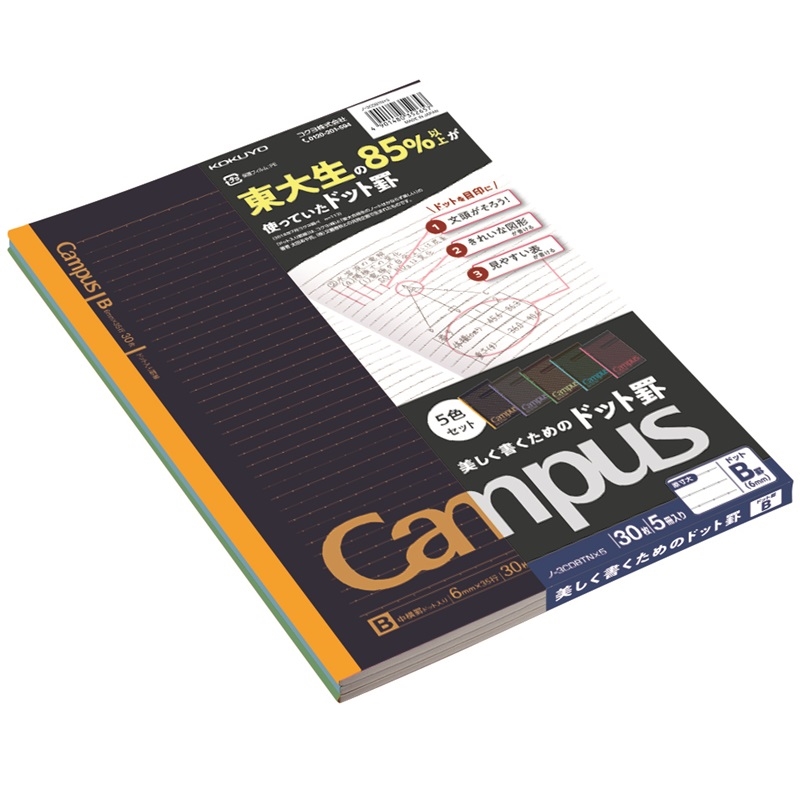 キャンパスノートドット入り罫線ブラックカラー表紙 5色パックB罫