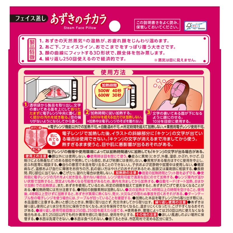 あご下、フェイスライン、おでこまですっぽり覆い、お疲れ顔をじんわり温めます。