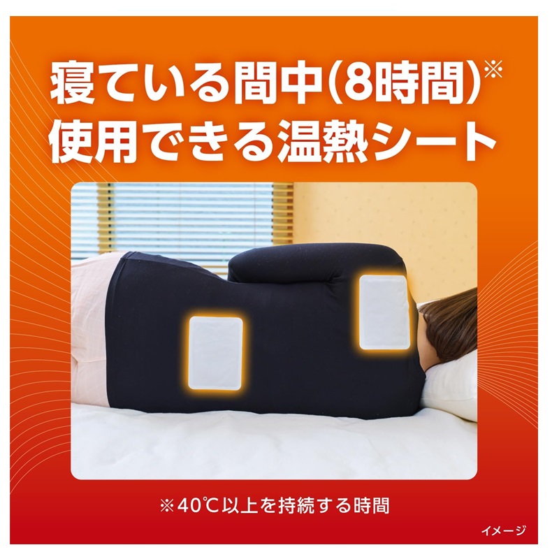 朝起きるまでずっと程よい温度が8時間持続します(40℃以上を持続する時間)。