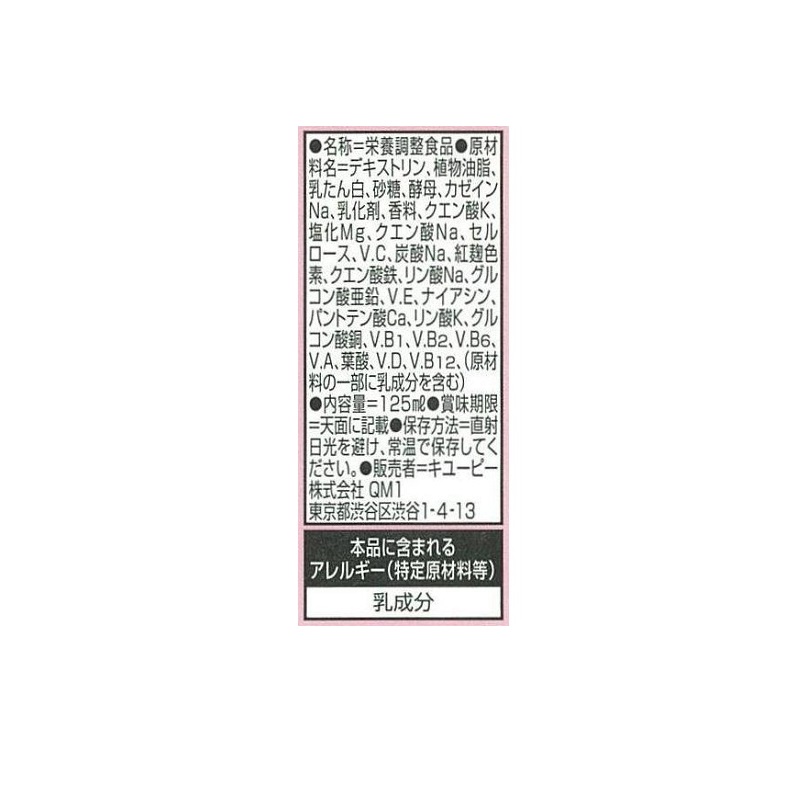 - デキストリン(国内製造)、植物油脂、乳たん白、砂糖、難消化性デキストリン、