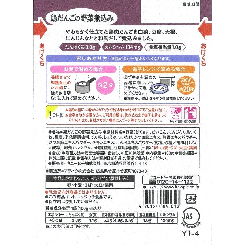 - 野菜(はくさい、だいこん、にんじん)、鳥つくね、豆腐、米発酵調味料、でん粉、しょうゆ、