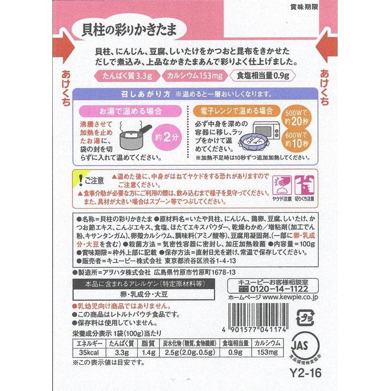 - いたや貝柱、にんじん、鶏卵、豆腐、しいたけ、かつお節エキス、こんぶエキス、食塩、ほたてエキスパウダー、