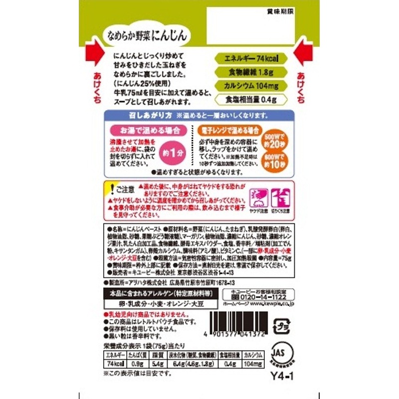 - 野菜(にんじん(国産)、たまねぎ)、乳酸発酵卵白(卵白、植物油脂、砂糖、果糖ぶどう糖液糖)、