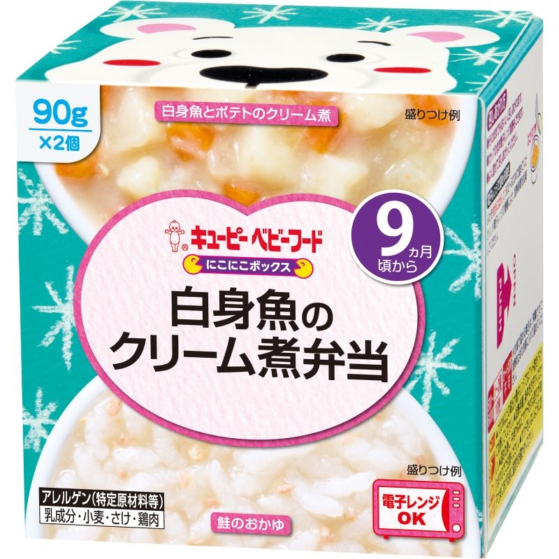 - 白身魚とポテトのクリーム煮:野菜(じゃがいも(国産)、たまねぎ、にんじん)、牛乳、乾燥マッシュポテト、