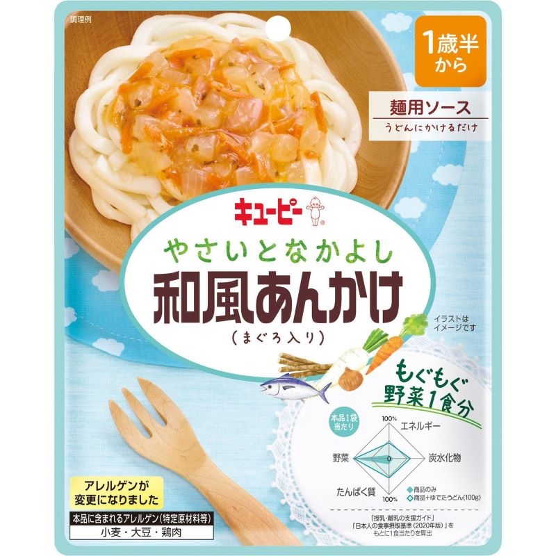 1食分の野菜とまぐろを一緒に煮込み、和風に仕上げた、幼児向けのうどん用ソースです。