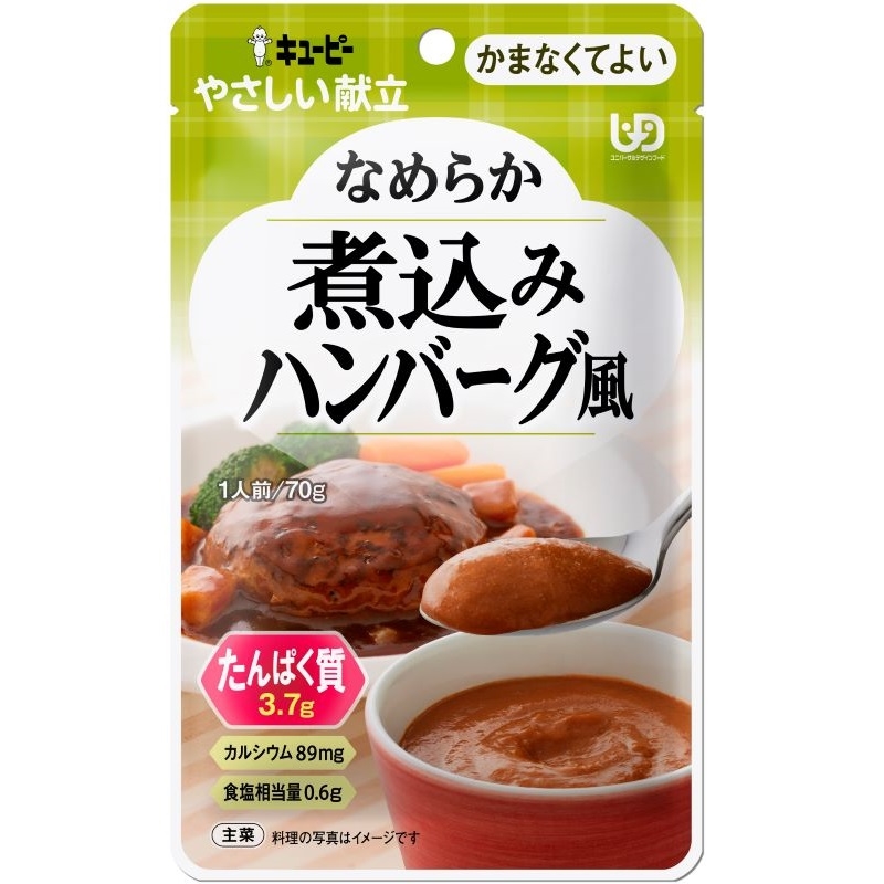 肉のうま味と炒め玉ねぎのコクが感じられる、ドミグラスソースで煮込んだハンバーグ風の味わいです。