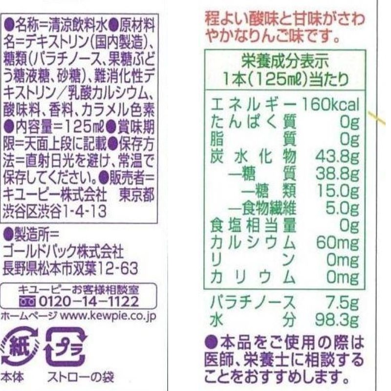 1本125mlで160kcal。