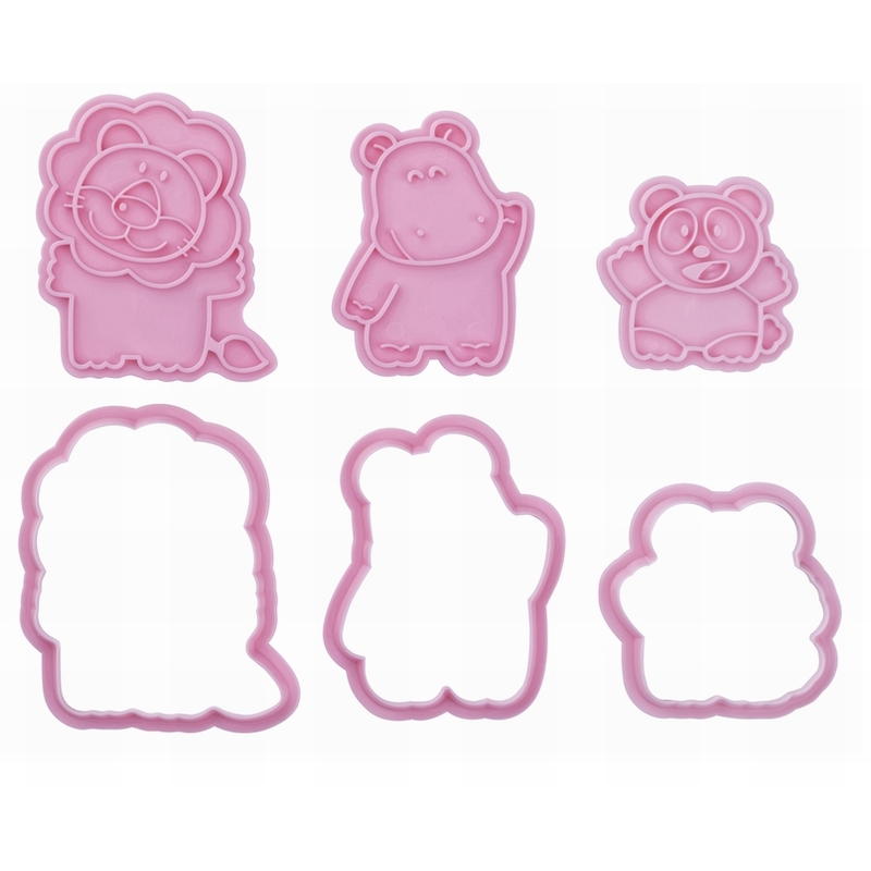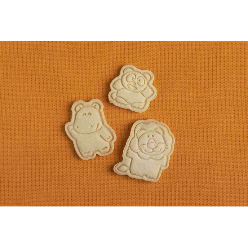 らいおんくん、かばさん、ぱんださんの3種類のクッキーが作れる抜き型とスタンプ型のセットです。