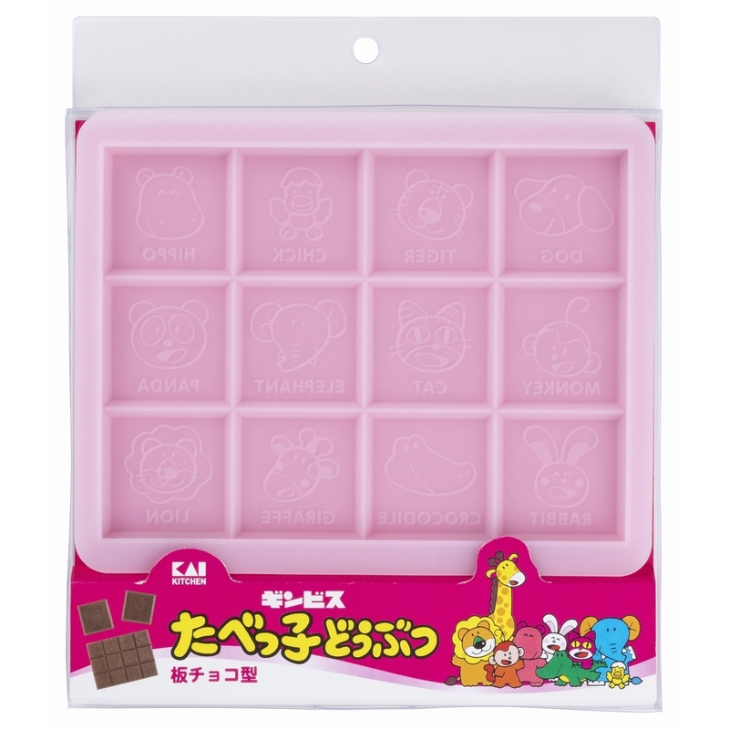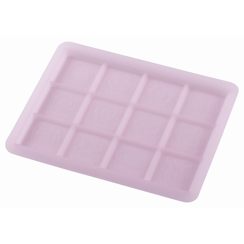 板チョコが作れるシリコーン型です。12種類のキャラクターの顔と英名が入ったデザインです。