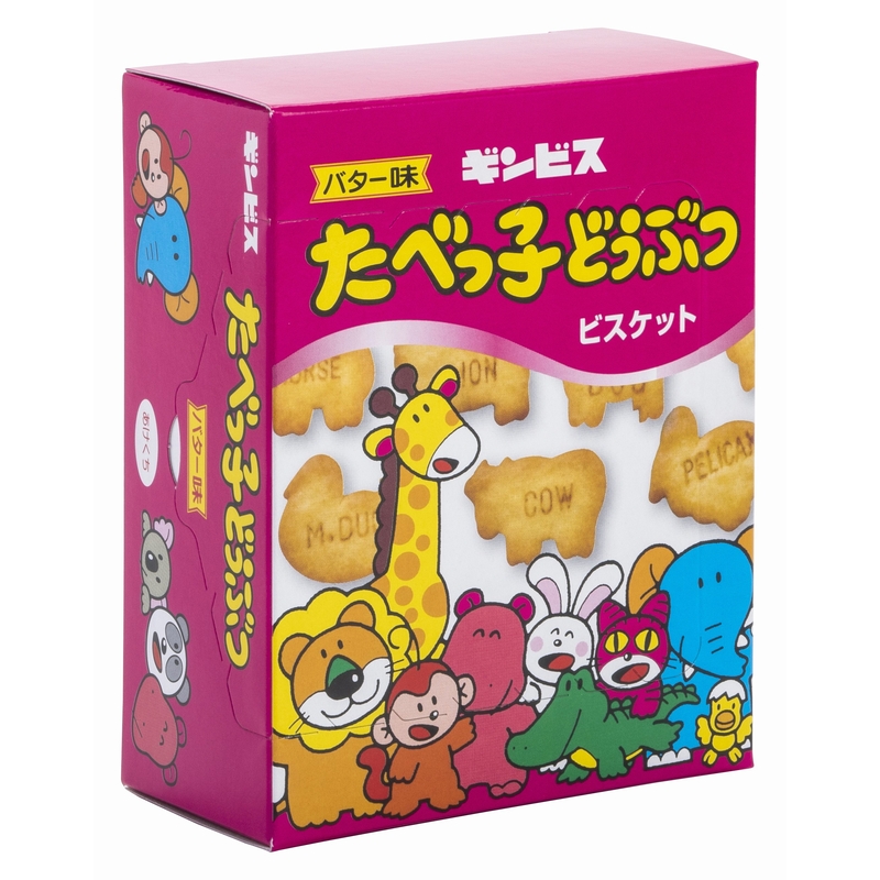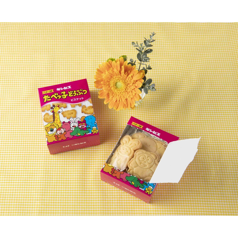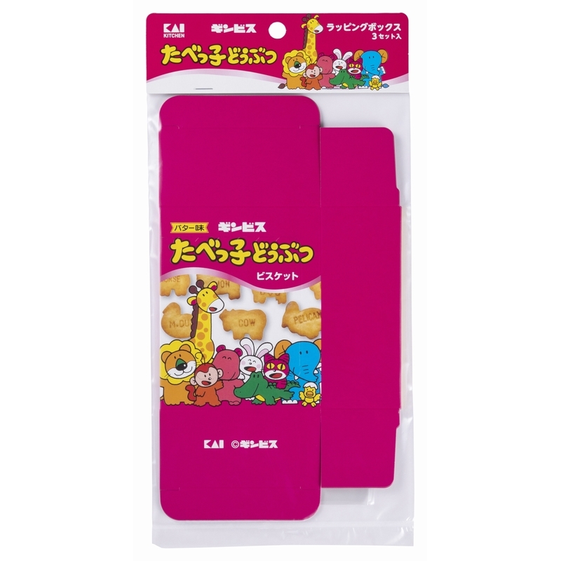 たべっ子どうぶつビスケットのパッケージのようなデザインのラッピングボックスです。