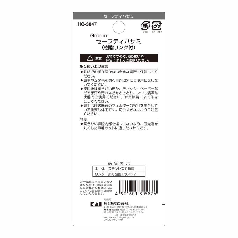 貝印 Groom! セーフティハサミ(樹脂リング付)