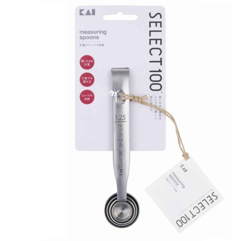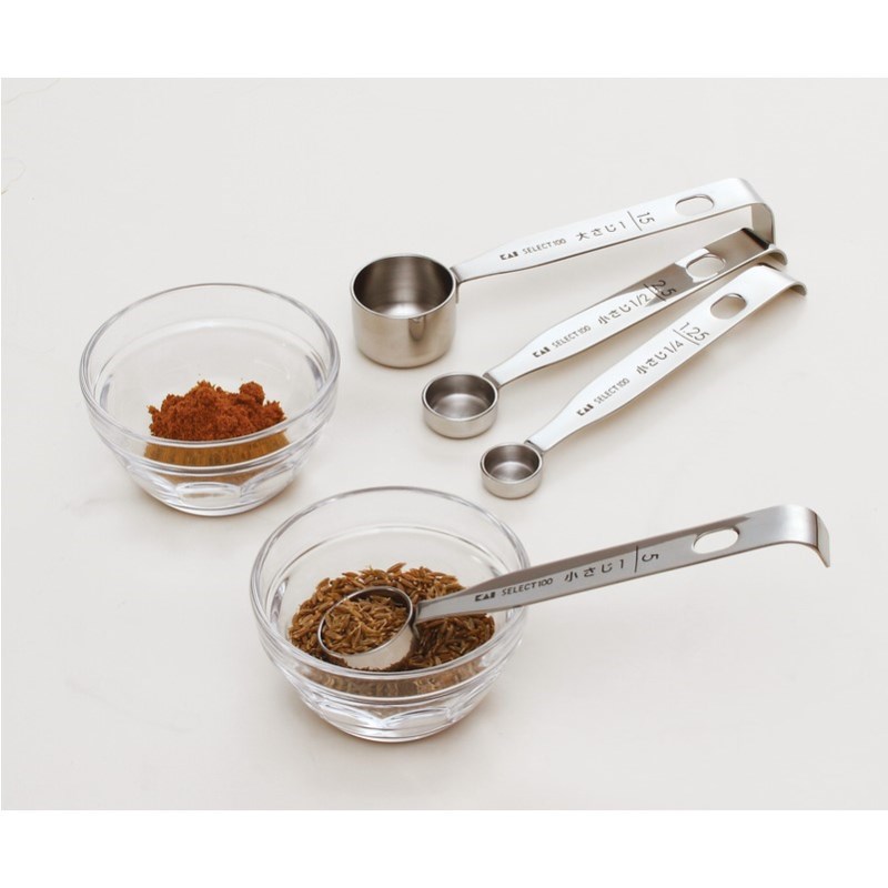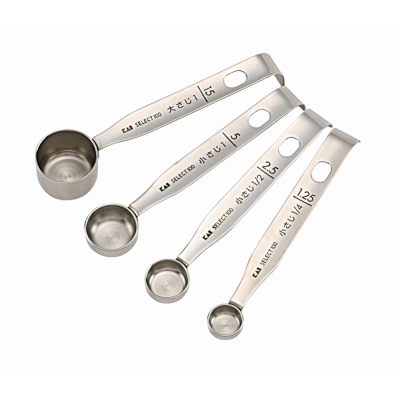 大さじ1、小さじ1、小さじ1/2、小さじ1/4、小さじ1/8の5つのスプーンのセット。