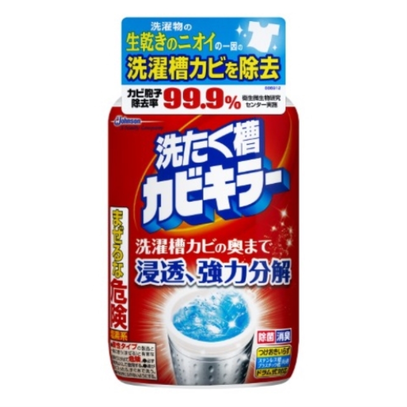 洗濯槽にへばりついた洗剤カス、ヌメリ、雑菌などが複雑にからみあった洗濯槽カビも独自の浸透成分で細かく強力に分解。