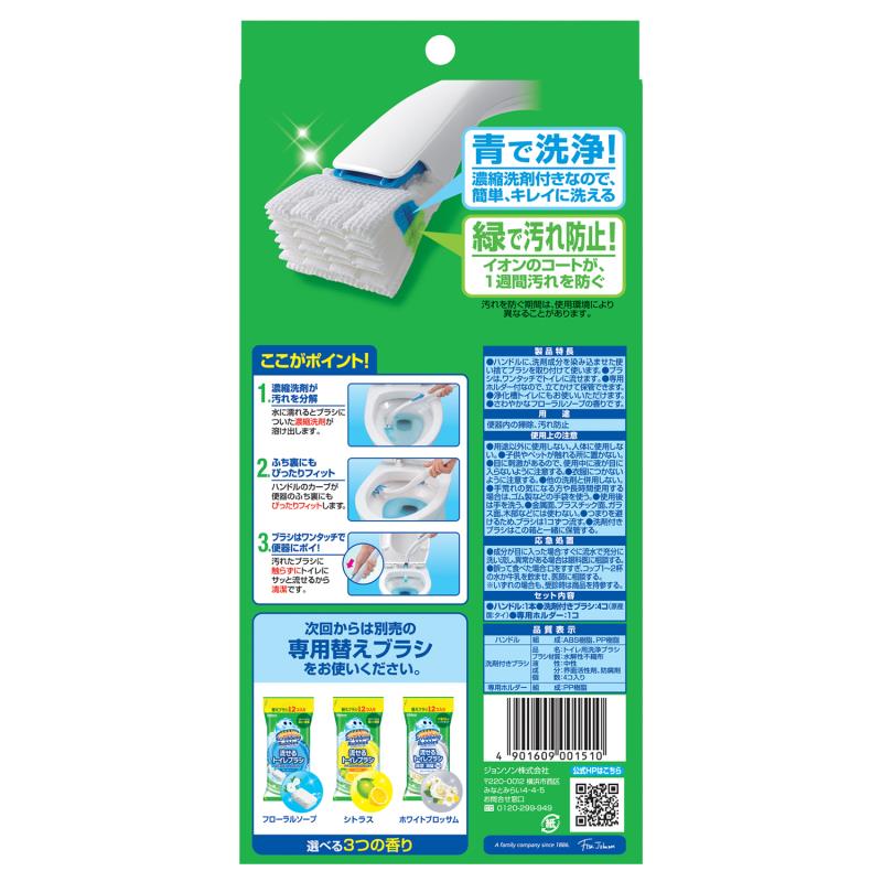 ●洗剤付きブラシはトイレットペーパーのように分解する素材でできているので、トイレにながすことができます。