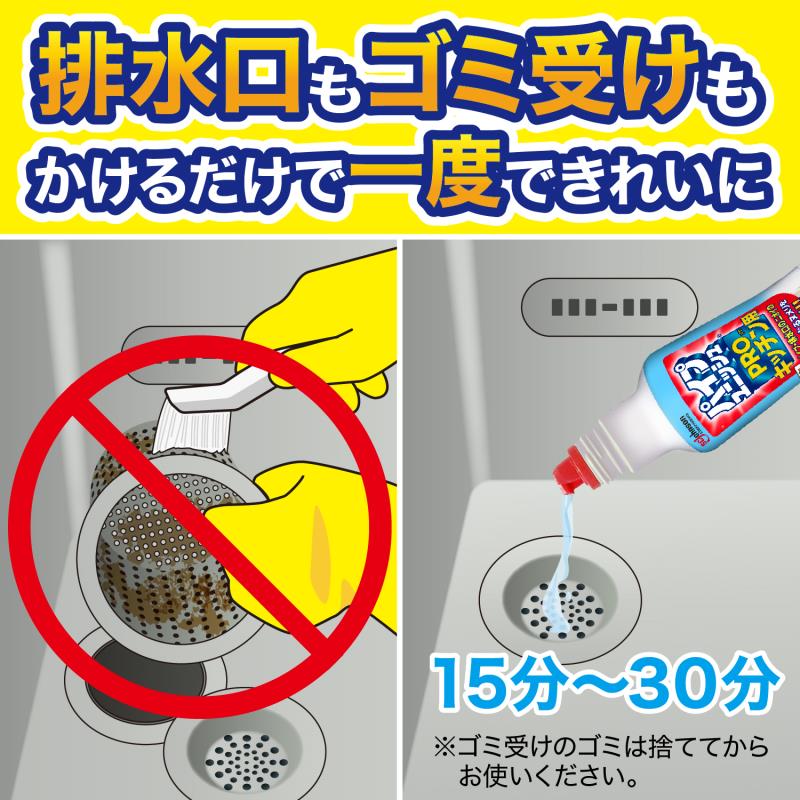 ●濃いジェルが排水口やパイプの側面にもしっかり貼り付いて、気になる所をきちんとカバーします。