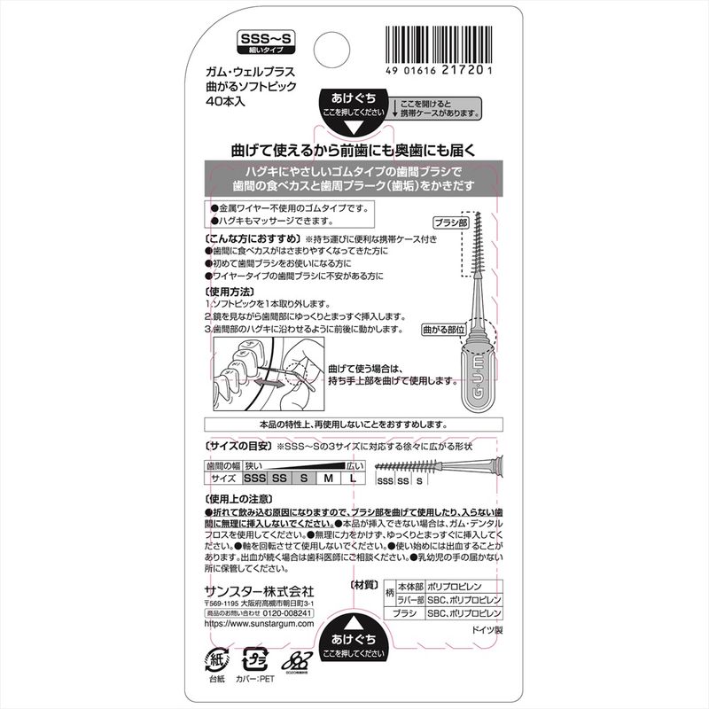 ハグキにやさしいゴムタイプの歯間ブラシです。細めの[SSS]サイズ