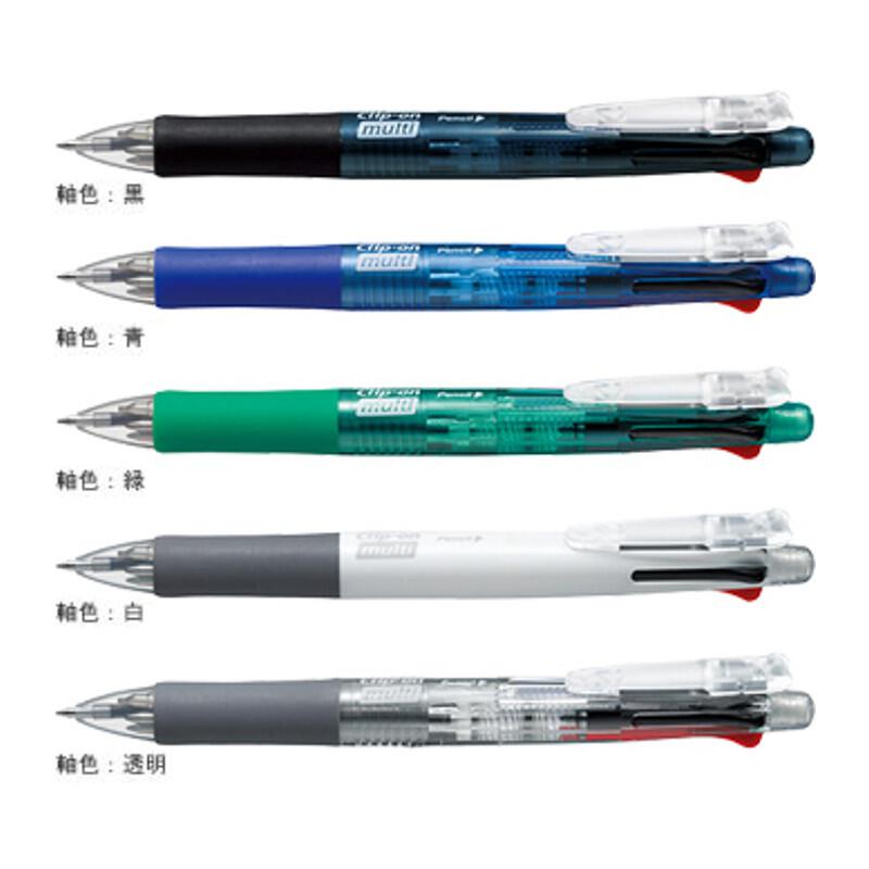 油性インクの黒・赤・青・緑の4色ボールペンとシャープが1本になった5機能ボールペン。