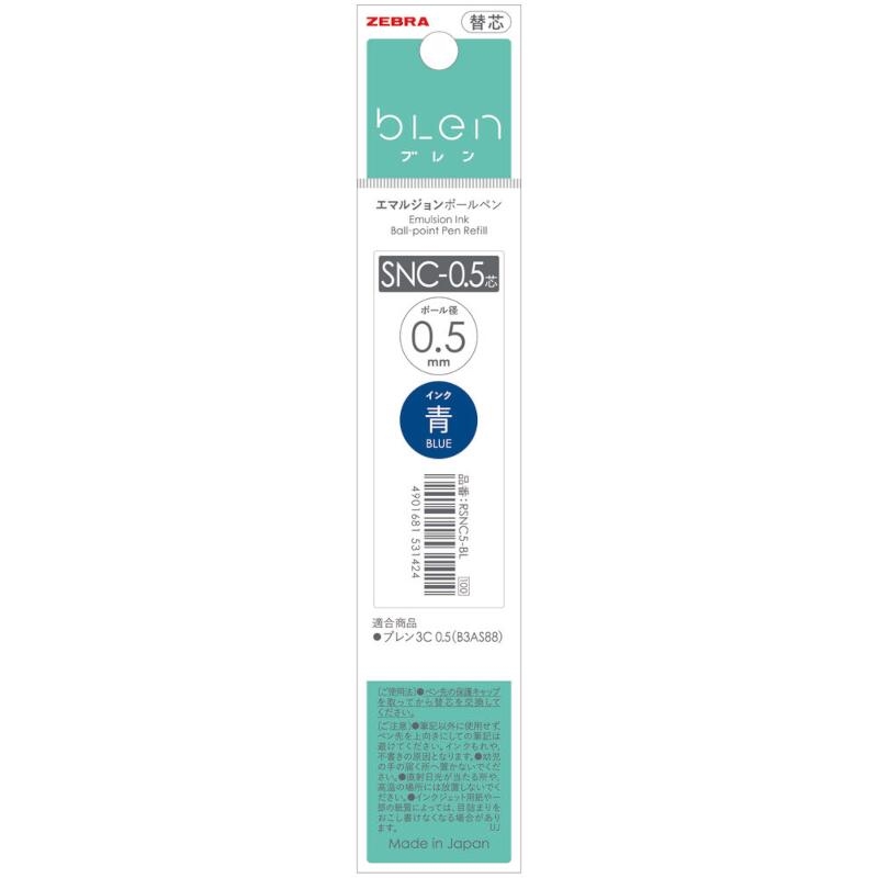 ブレン多色・多機能ペンの替芯。エマルジョンインクは、油性と水性のいいとこ取りで、書き味なめらか。
