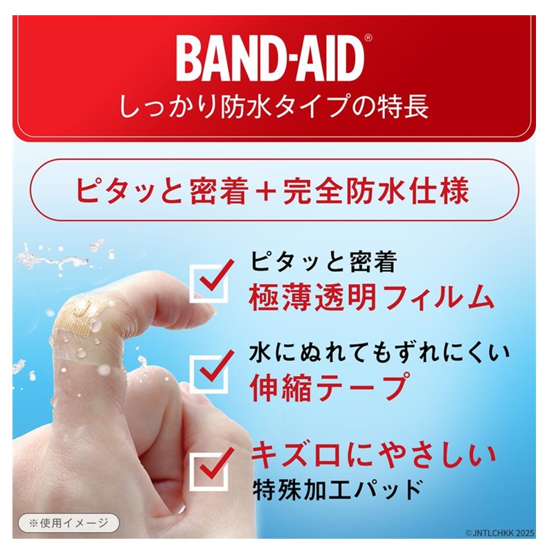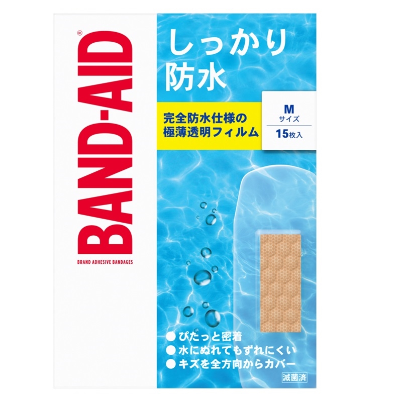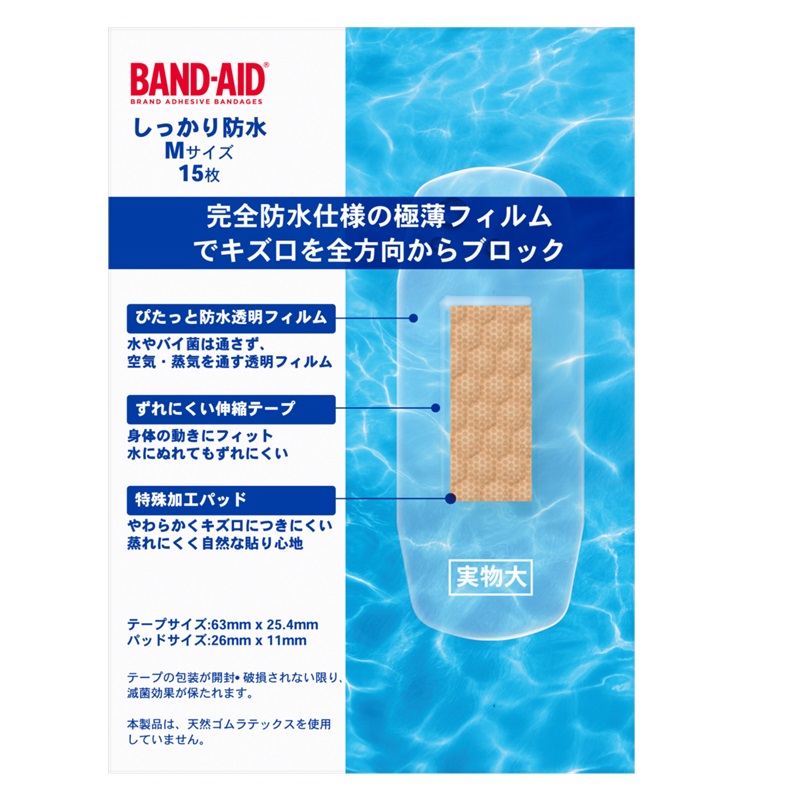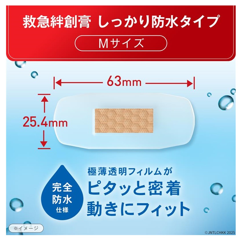 完全防水仕様の極薄透明フィルムでキズ口を全方向からブロックする救急ばんそうこうです。
