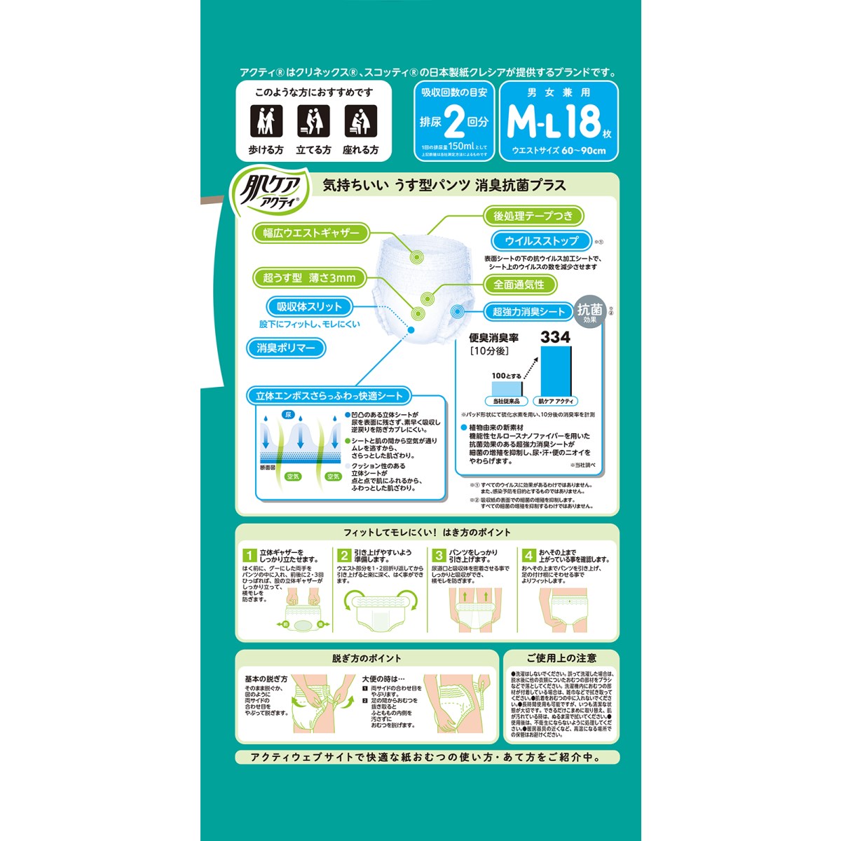 超強力消臭で気になるニオイすっきり!弱くなりがちなシニアの肌へおすすめの介護用品・紙オムツ、肌ケアアクティです!
