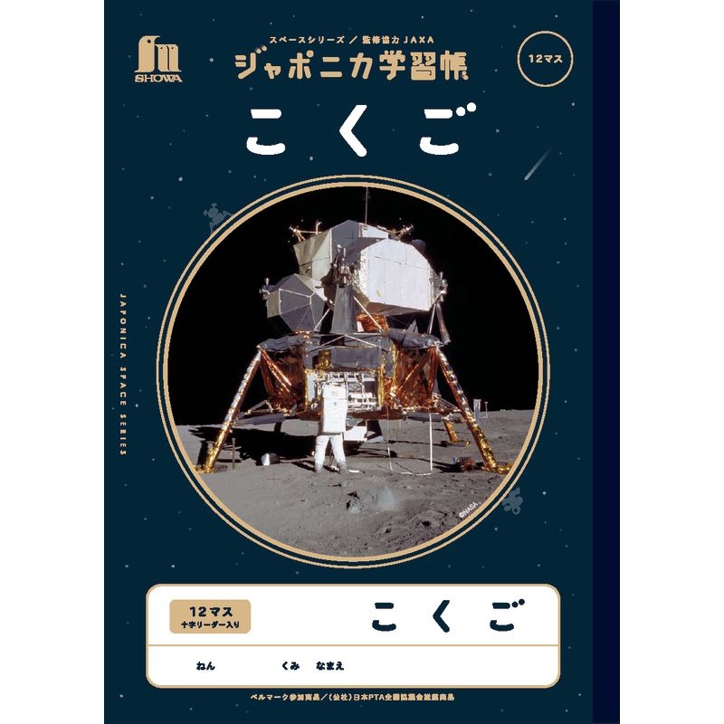 従来のジャポニカ学習帳の四角い枠ではなく、国際宇宙ステーションをイメージした丸い枠のデザインが表紙。